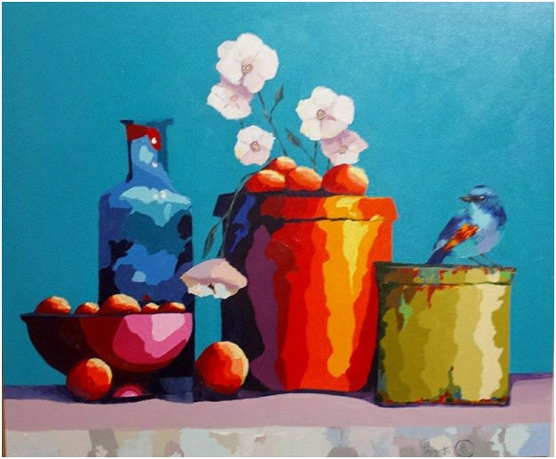 And, as an element of life, the colors can still be well combined and contrasted, to promote a beautiful effect at work and a pleasant impression when looking. In the work of Carolina Saidenberg (Fig. 6), the seriousness of blue and black, on the ladder and the wall, is broken by the birds in pure colors that, in flight, less smooth and take life to the scene. The perfect combination of shades allowed charm and poetry of the work.