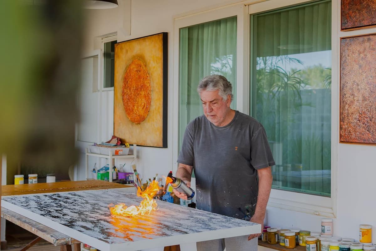 创造和生活艺术的渴望源于直觉, 多功能性是我的特点之一. 我主要关注纹理和浮雕,这就是我开始工作的方式. 只有从这些, 我会考虑调色板. 进程推进, 有时会随着与生俱来的自由来回走动. 有时今天是绿色的, 明天可能会变蓝… 这样的自由… 我的画住在“动名词”中, 直到销售时间.