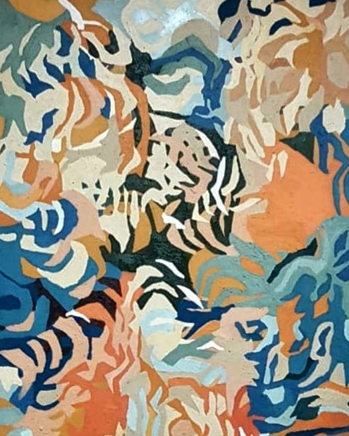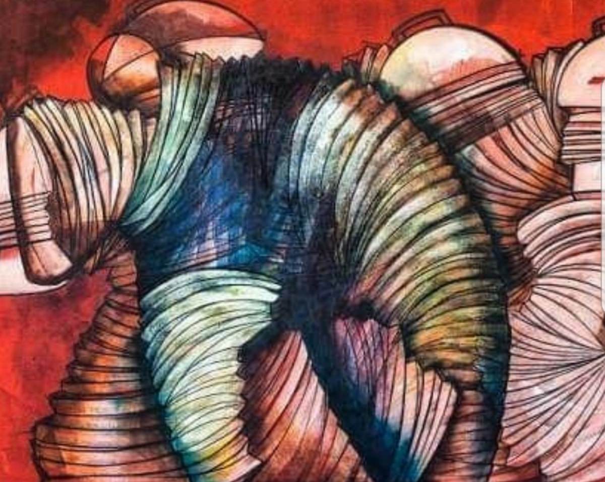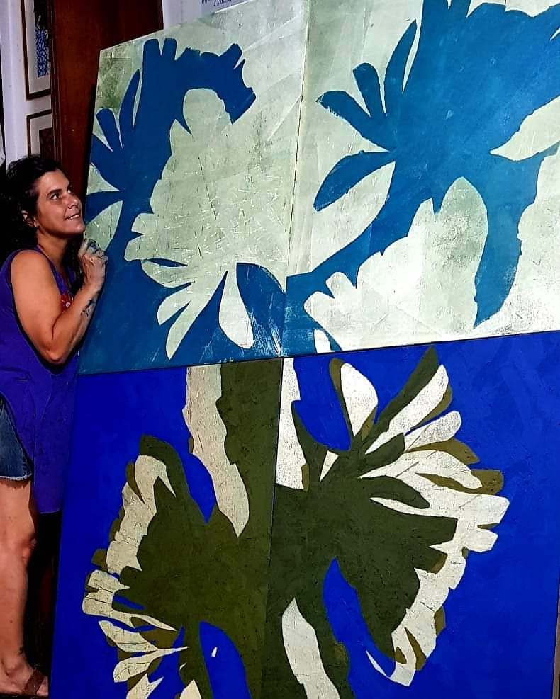 Eu trabalho muito, até fadigar, quase todos os dias, uma frase do Picasso me inspira “quanto mais eu trabalho, mais inspiração eu tenho”, não me sinto seguidora de nenhuma escola ou artista, tenho a cultura popular como inspiração e a técnica confusa e suja como minha parceira.