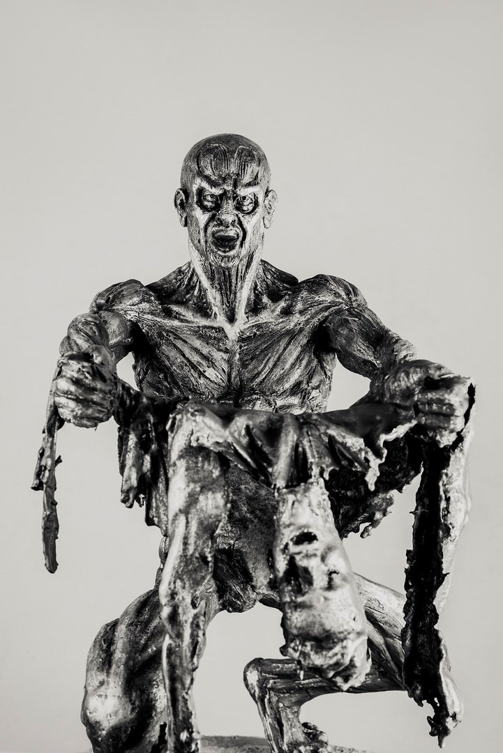 Enquanto isso, nas 9 esculturas de Marina Vergara, o aspecto teatralizado e dramático das obras nos leva à uma reflexão sobre o que estamos fazendo de nossas vidas hoje, num mundo tão fragmentado, tão esvaziado, tão empobrecido do ponto de vista da experiência humana.