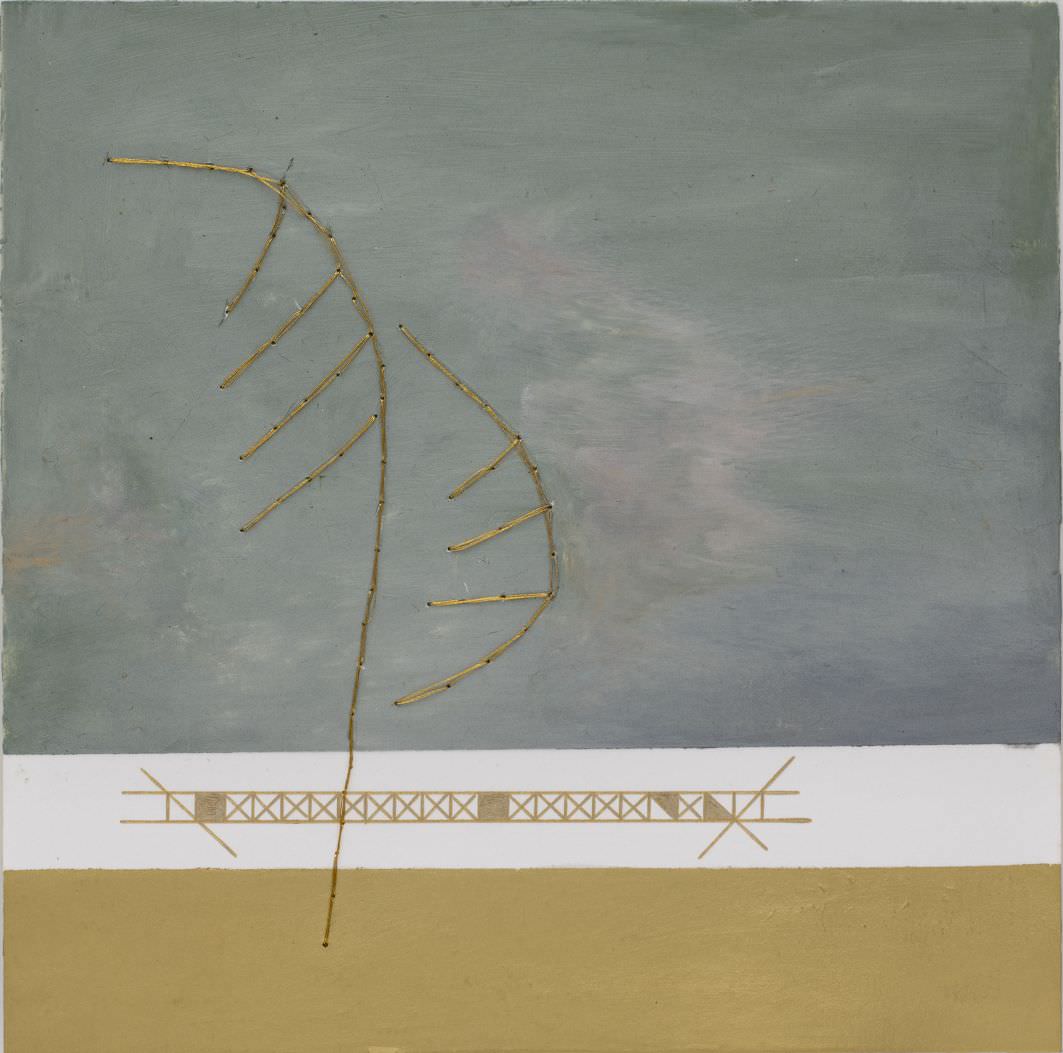 Sandra Antunes Ramos apresenta pinturas em pequenos formatos, que misturam tinta a óleo e costura sobre papel. Nas obras, ela trabalha tanto a questão pictórica, com blocos de cor, sua marca registrada, como rompe com isso, com linhas fluidas costuradas, que remetem ao corpo feminino. Pequenas e delicadas, as pinturas resultam de um processo de fazer lento e minucioso. “O papel é mais frágil do que a tela. Além disso, uso papéis finos, transparentes, que marcam, vincam, reagem mais. A tinta a óleo, mesmo no papel, demora muito para secar e uso diversas camadas. Depois vem a costura, que é lenta também”, conta Sandra. “São obras delicadas, tanto no formato quanto no acabamento, que buscam equilibrar o geométrico e o orgânico, a rigidez e a fluidez”, explica Maneco Muller.
