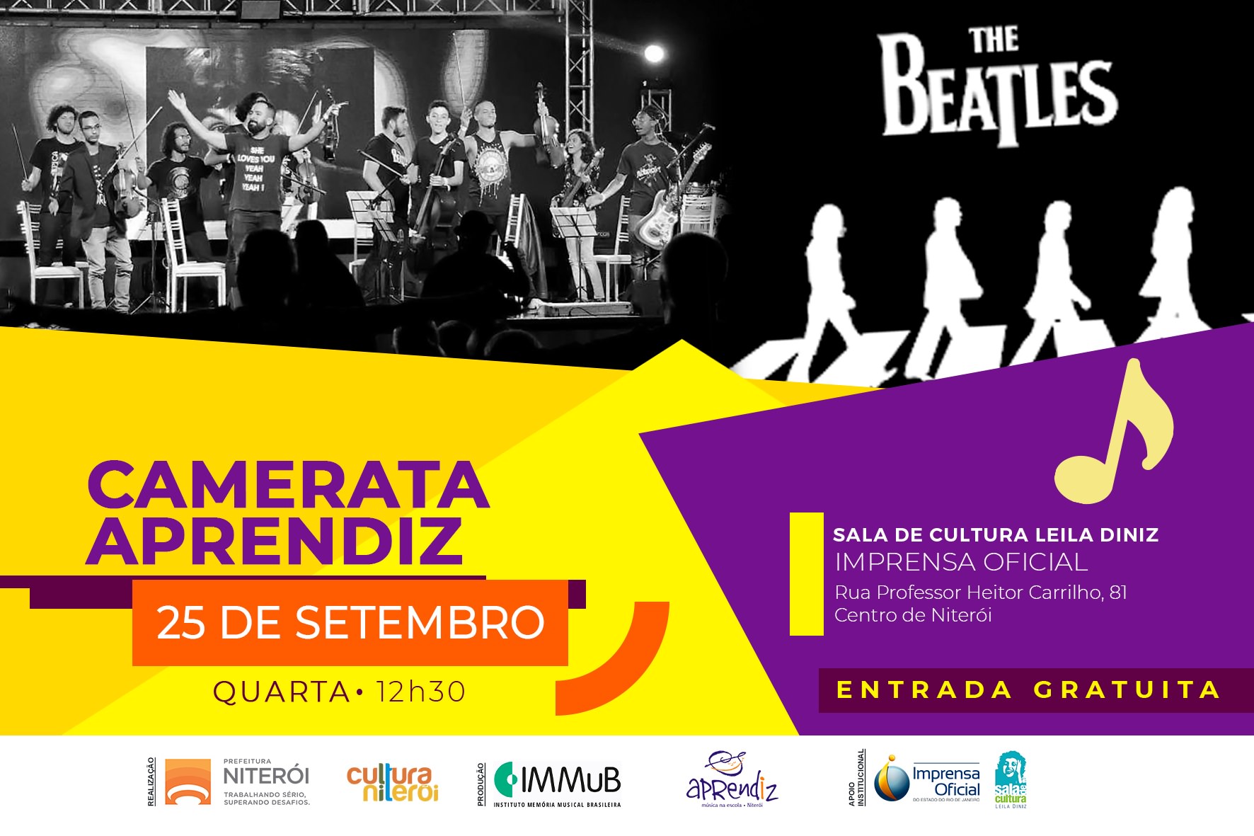 Formed by 13 Apprentice Program musicians – Music in Schools (initiative supported by the Niterói City Hall), Camerata aims to enhance the experience of being a soloist, emphasizing the scholarly and popular compositions from various periods, genders and nationalities.