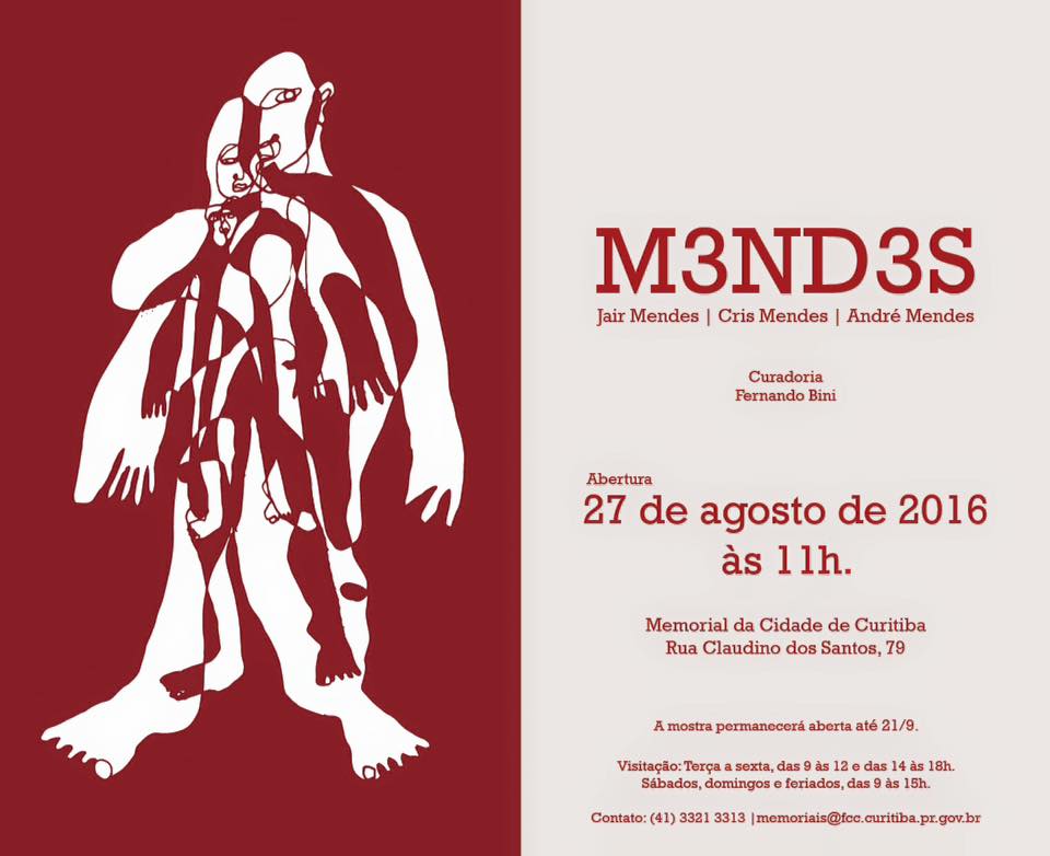 Artistic production of three generations of the Mendes family will be on display at the Salon in Curitiba Memorial Paranaguá, from 11:0, This Saturday (28). Curated Fernando Bini, “M3ND3S” the paintings in oil on canvas by Jair Mendes; the videos, paintings, drawings and installation of Cristina Mendes and André Mendes productions.