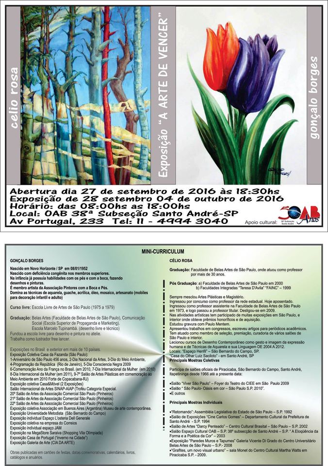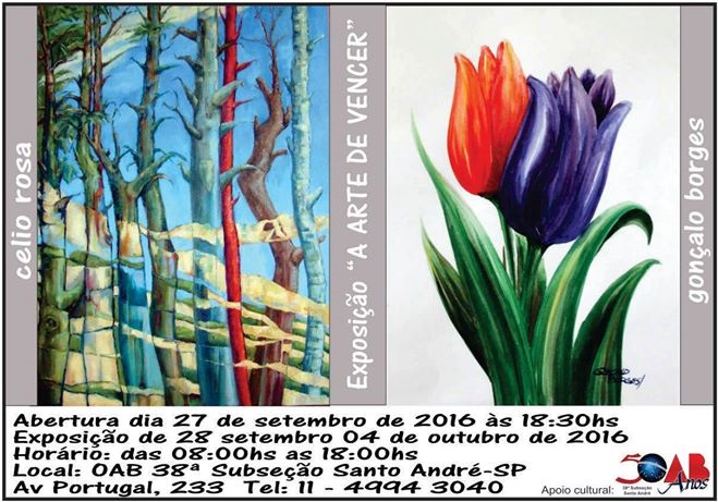 His works can be seen until the day 4 October at the headquarters of the OAB of Santo André, from 8 to 18 h, Portugal Avenue, 233. And the exhibition is completed with the works of Celio Rosa, We are together in the same place. Worth giving a passadinha there.