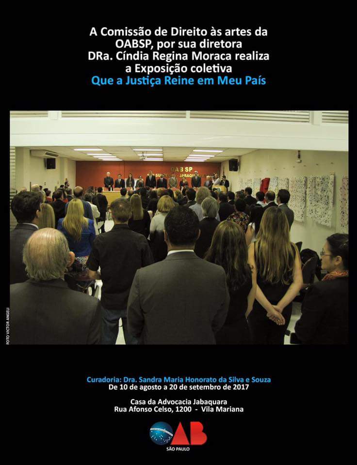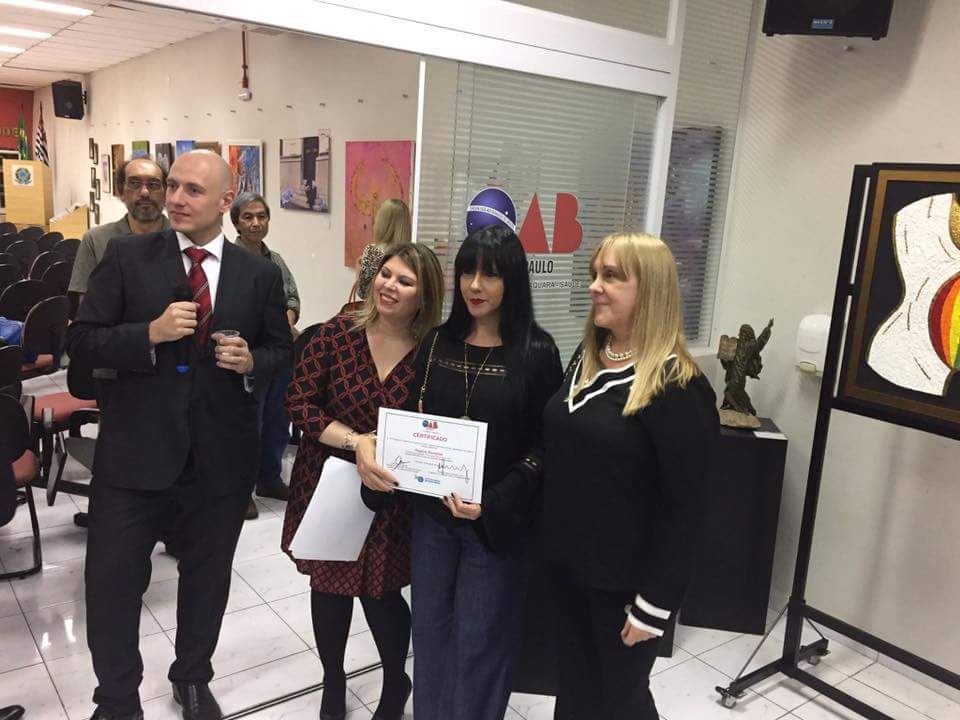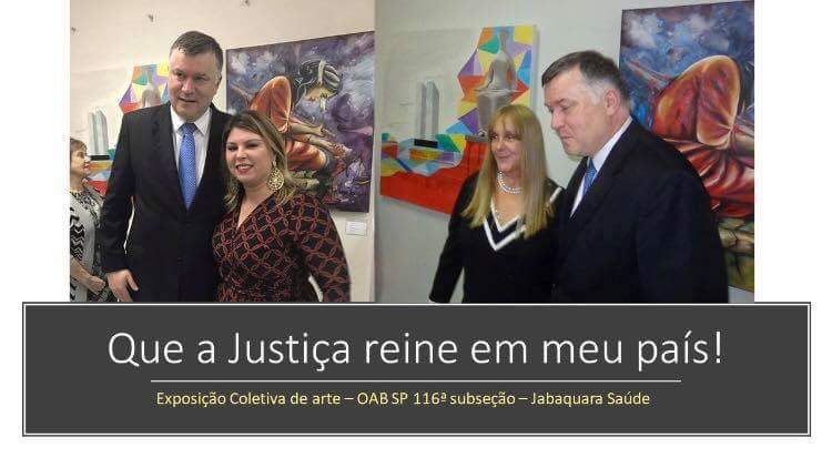 At the rack, It was clear the success of exhibition, with the impeccable opening and delivery of certificates to participating artists. The surprise of the exhibition was still unpublished works of each authors, made especially for the event. All covered, were one by one, gradually devised, lighting with colors and shapes, to OABSP – Jabaquara. The success and originality is due to Dr Coordinator. Cíndia Regina Moraca and Curator Dr. Sandra Maria Honorato Silva .