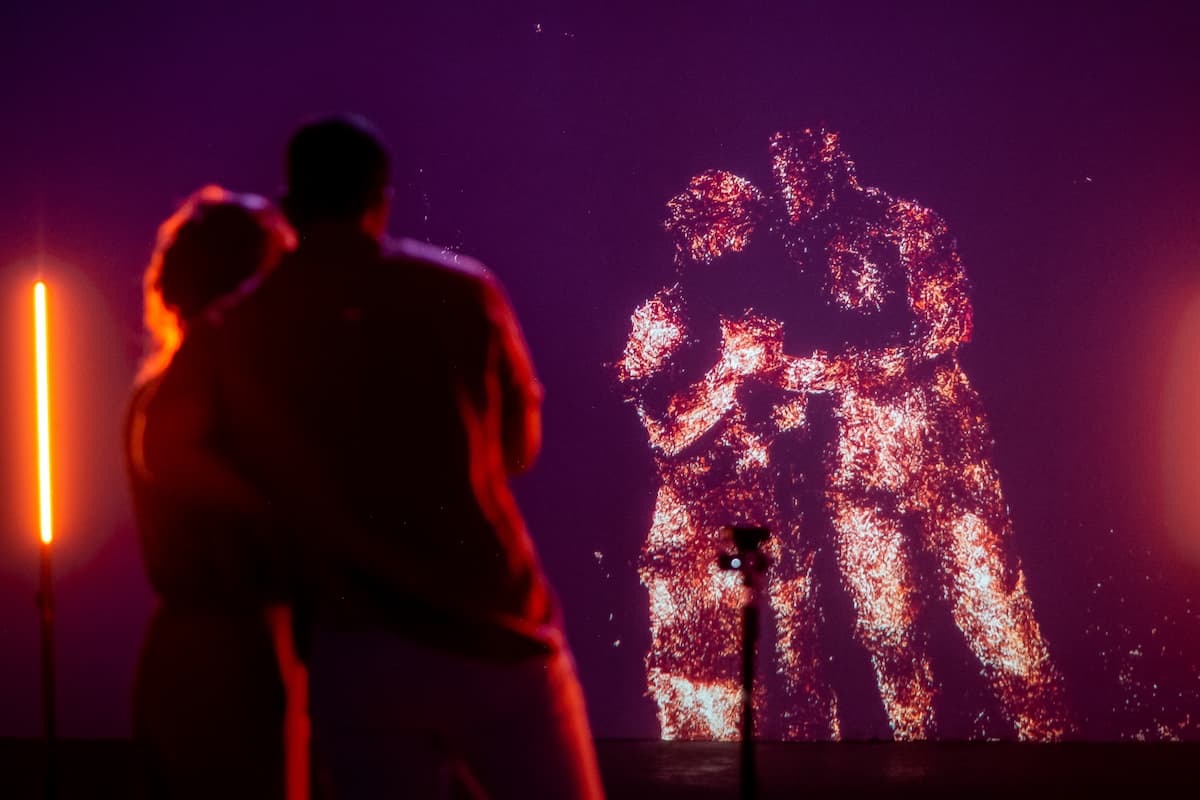 The last space will bring the following question: "In the end, what is it to be human?”. Her, the exhibition invites the public to think about it., through an immersive experience with a motion sensor and luminescence projection. It will be possible to see the aura of people simulated through human warmth.