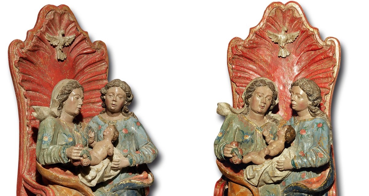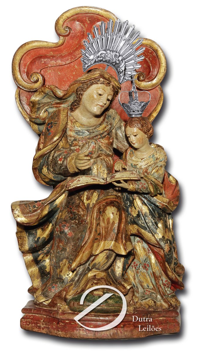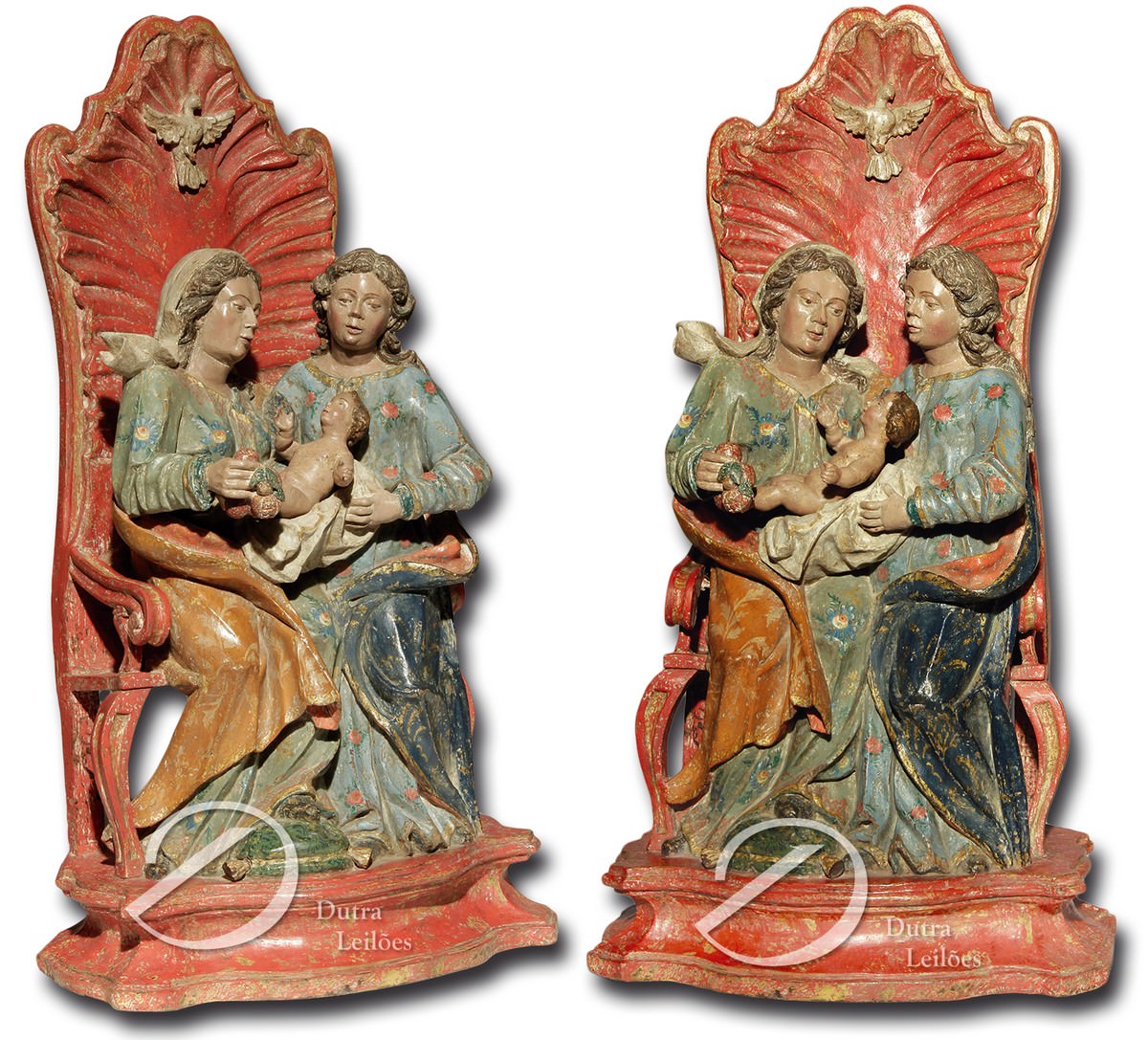 It is part of the list yet holy Mothers. The work is a set of wood sculpture polychrome, with traces of gilding, representing Our Lady, St. Anne and the Infant Jesus with flowing hair and hairstyles, and Santana with short robe. It has good draping with sgraffito and flowers in polychrome, sitting in arm chair with cut high-backed garnished by the Holy Spirit. The feet are the show being one over pad and cut rectangular base in steps. Has 60 cm and it was established in Minas Gerais century 18.