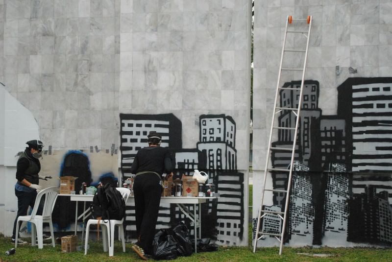Already the acoustic shell Panel, done with the stencil, began to be painted on Thursday (12) and will be finalized this Saturday. Is a tribute to the city and the activities that are performed in the square. The project is inspired by one of the main sights of the city, the Botanical Garden, buildings and sports references, with drawings of le parkour, bike, skaters and the fight, through the athlete Curitiba Cris Cyborg. All this combined with a soundbite- “Fight my battles”, of its author – talks about the everyday struggles, the square and the sport.
