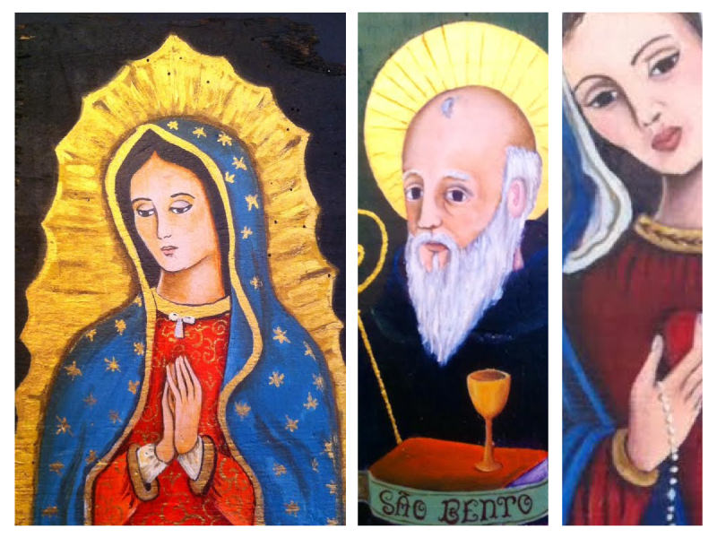 Our Lady of Guadalupe, St. Benedict, São Lourenço, Santa Barbara, Carmo, Mercês, Santa Terezinha, San Francisco, among others, have been worked in small formats with recovered materials and painted in oil. Although the technique used is not the traditional, the research of the artist preserves the unique features of each santo.