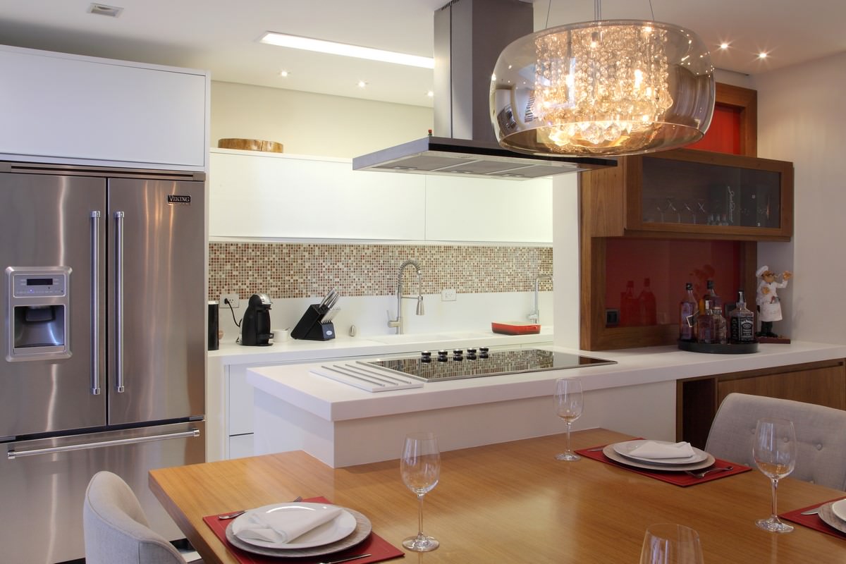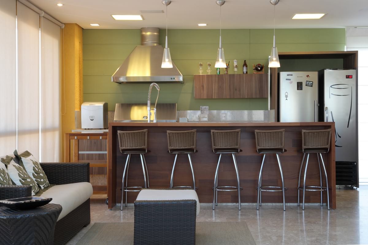 For more apartments and to those who believe that the art of receiving should be a unique experience, It opts for gourmet cuisine, her difference to a bench that is integrated uni other environments (living room, dining and kitchen) and where the cooktop for greater involvement with guests, because it is a more modern kitchen, other appliances such as ovens, wineries and grills are built.