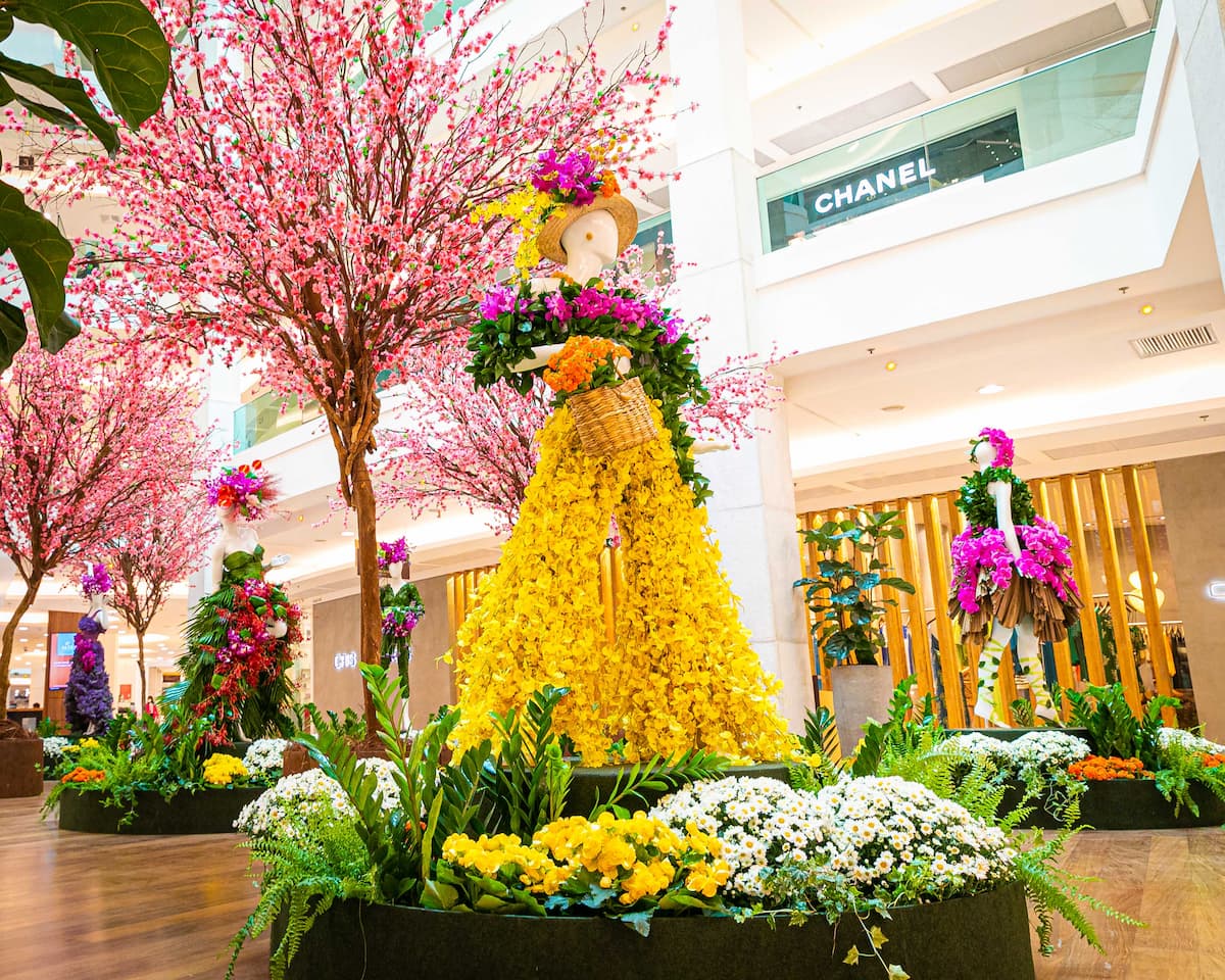Between the days 22 and 27 September, flowered mannequins and cherry trees signed by the artist from Rio de Janeiro color the 1st floor of the mall