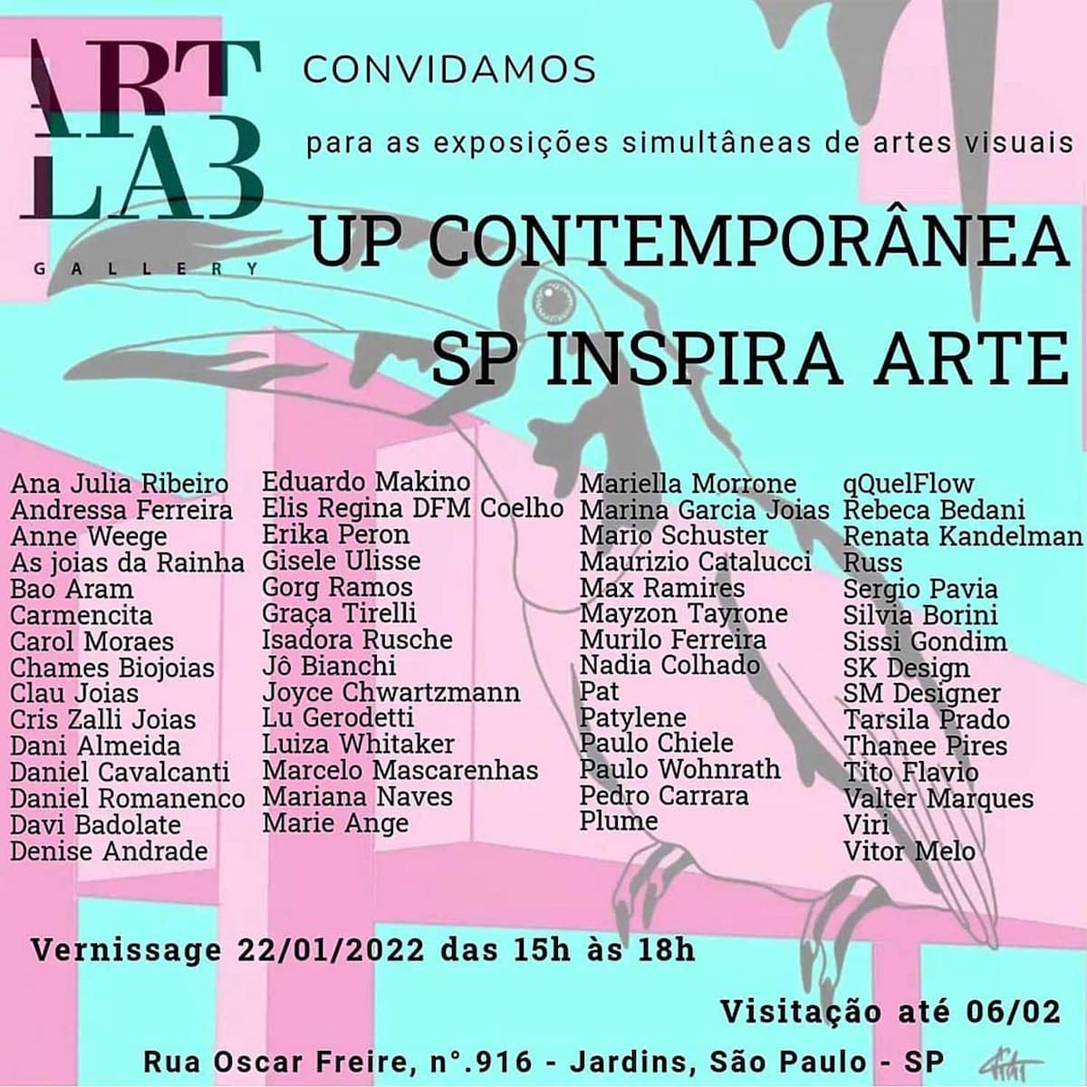 The Art Lab Gallery, celebrates the anniversary of the city of São Paulo with the opening of two group exhibitions simultaneous: CONTEMPORARY UP and SP INSPIRES ART. Juliana Monaco, who signs the curatorship of the two exhibitions, reinforces its commitment to the cultural circuit of promotion and generation of opportunities for art and emerging artists.