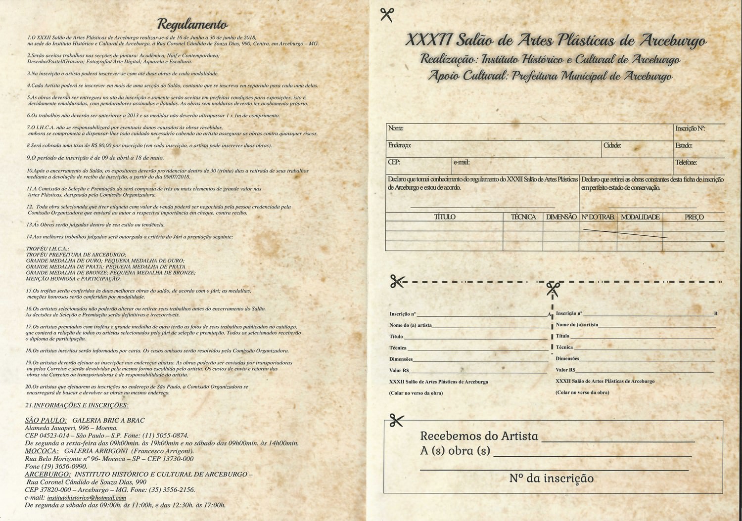 This year, Registration for the Arceburgo Hall are open to all artists from 9 April 2018 and 18 May 2018. The chips can be requested by email [email protected] or [email protected]. It is worth attending!