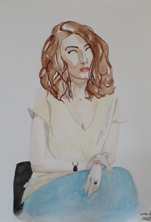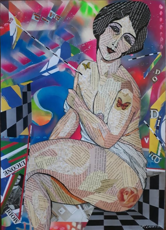 La chica sentada de Ana Vig 3 (Fig. 7) es un presentador muy conocido. Perfecto en color y forma, ella está sentada en un gesto elegante, con delicadas sombras y efectos de luz. Realizado con la técnica de la acuarela, ella es la protagonista de la escena sobre el fondo blanco. La chica de Ana Bittar (Fig. 8) fue trabajado con la técnica de pastel seco. Representa el período de reclusión, usa una máscara y no tiene el famoso arete de perlas que la hizo tan conocida. La otra chica (Fig. 9) está en la obra de Paulo Lionetti y fue trabajado con la técnica del collage sobre cartón, fondo de spray de color coim. El gesto femenino lento y sensual se destaca en medio del colorido entorno. La obra es una reinterpretación del conocido cuadro de Modigliani.
