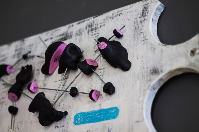 Él dice que todas estas características se han convertido en simples garabatos en el papel y han ido evolucionando poco a poco para ganar volumen, pantallas de colores y estética las organizaciones y en otros materiales. De acuerdo a lo, algunas obras son únicas y fueron creados especialmente para la exposición en espacio verdadero tatuaje de amor.