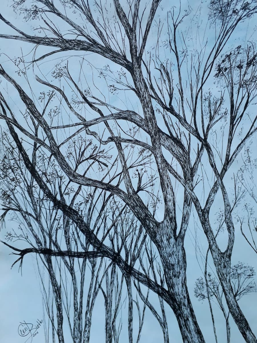 Yo trabajo con pintura al óleo, acuarela, lápices de color, pasteles, nanquín. Me gusta mezclar técnicas.