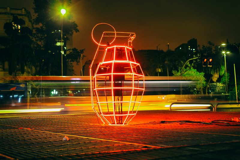 Hay más de 40 obras entre lambe-lambe, proyecciones a gran escala, proyección en 3D vidéomapping, intervenciones urbanas, Además de los proyectos de arquitecturas y proyectos desarrollaron en los últimos años con otros colectivos artísticos y comunidades urbanas. Son intervenciones urbanas que impactan al público creando una conexión inmediata. El curador es los mismos artistas. Va a 3 Febrero.