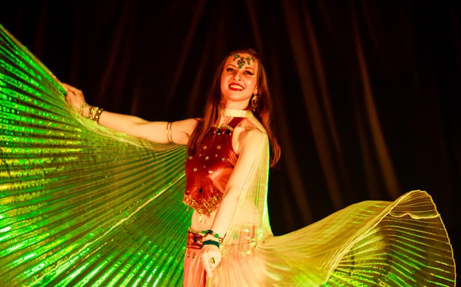 - Tienes experiencia en danza árabe, cierto? ¿Podrías contarnos un poco sobre las características de este tipo de baile??
