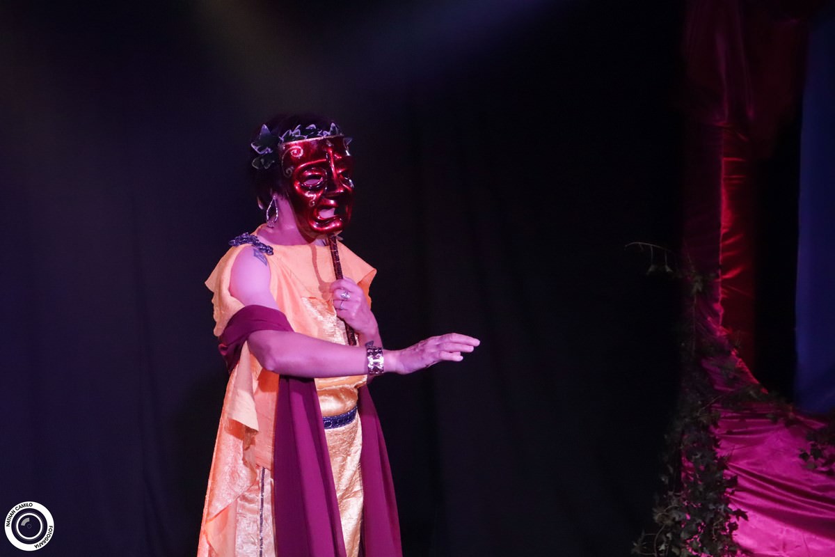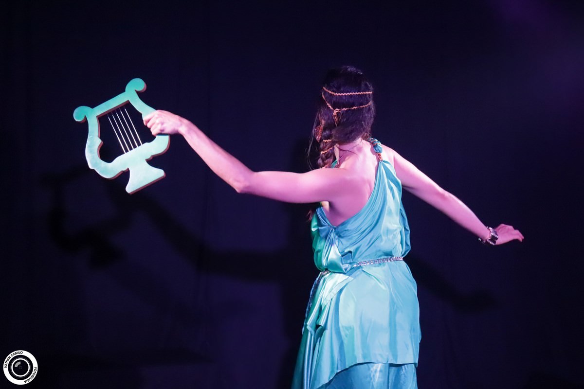 En 2019 creamos el espectáculo "Bailando con las musas: un viaje a la antigua Grecia", y en ese momento, el objetivo era acercar al público a un poco trabajado en la mitología griega: las musas griegas. Rodeamos el universo del dios Apolo, mostrando el camino de una pitonisa, desde o Templo de Delphos, hasta el encuentro con cada una de las musas y sus artes sagradas. Este guión era sobre una historia original., no contamos mitos específicos, pero viajamos por el universo apolíneo a través de la danza, música y teatro. El desafío aquí fue adaptar el lenguaje de la danza oriental al escenario de la antigua Grecia, sem descaracterizá-la, ayudado por el uso de accesorios construidos especialmente para el espectáculo (Liras, Arcos, Máscaras, etc..), por los disfraces caracterizados por sus túnicas y la música. De todo modo, Este fue un trabajo más autoritario que buscó conectar el universo musical y artístico de una manera intemporal, junto con dramatización y baile. Fue realmente muy especial.