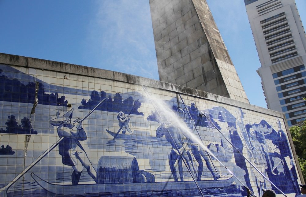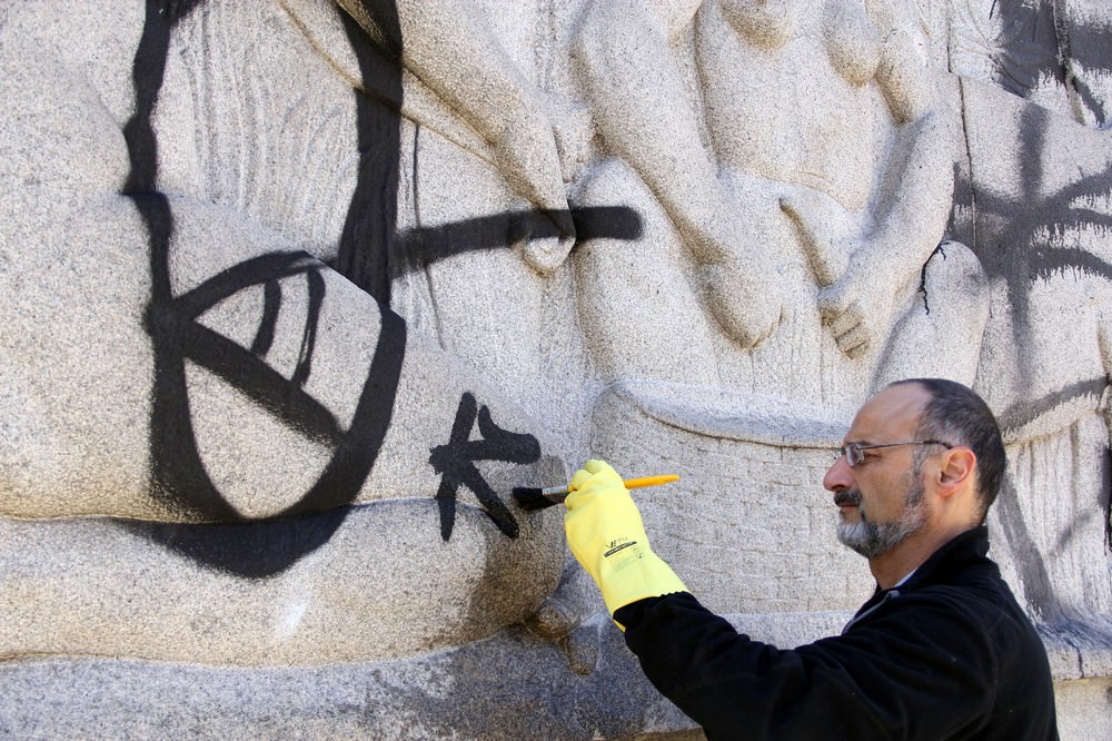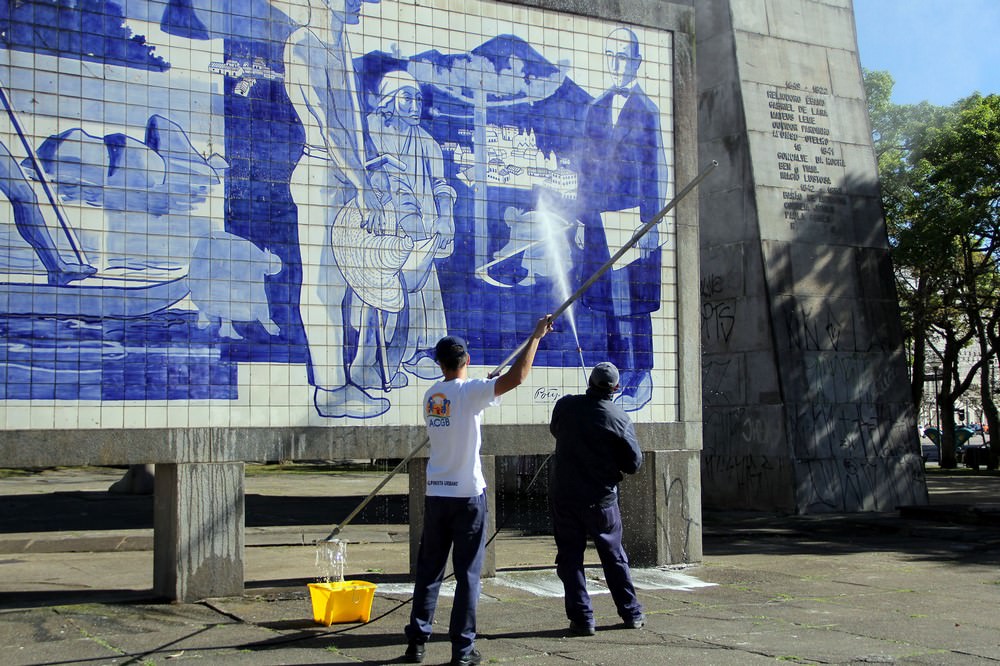 El equipo de coordinación de la preservación y conservación de colecciones de la Fundación Cultural de Curitiba a trabajar esta semana en la eliminación de graffiti en las obras y los paneles cuadrados artísticos 19 Diciembre. La acción es una asociación de pasillo de ciudad con el Associação Comercial do Paraná, desencadenó el apoyo de empresas para el suministro de equipos y limpieza suministros de monumentos.