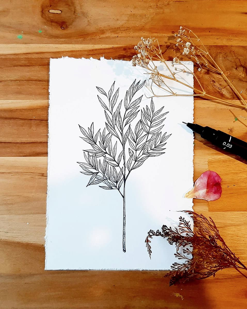 “comencé a dibujar 2020 en medio del caos de la pandemia. En verdad, fue un descubrimiento en mi vida. Todo comenzó con el objetivo de aliviar la ansiedad y relajar la mente.. Empecé a dibujar mandalas pero a medio camino descubrí que los bolígrafos eran geniales para dibujar otras cosas y me identifiqué en el mundo botánico.. Cambié de profesión y hoy trabajo con el arte. Los materiales que uso, básicamente son papeles especiales para dibujo y los bolígrafos técnicos. me gusta lo mejor (0.1, 0.05 y 0.03) para un diseño más delicado y un sombreado perfecto. También uso bolígrafos más gruesos., dibujar en papel reciclado, del que me enamoré y hoy hago dibujos llamativos con cierta dramaturgia. Mi intención con el arte es llevar un poco de naturaleza a cada persona.. Es demostrar que los seres humanos sí necesitamos estar más cerca de la naturaleza.. ella nos libera, destaca la Artista Patî Silva.”
