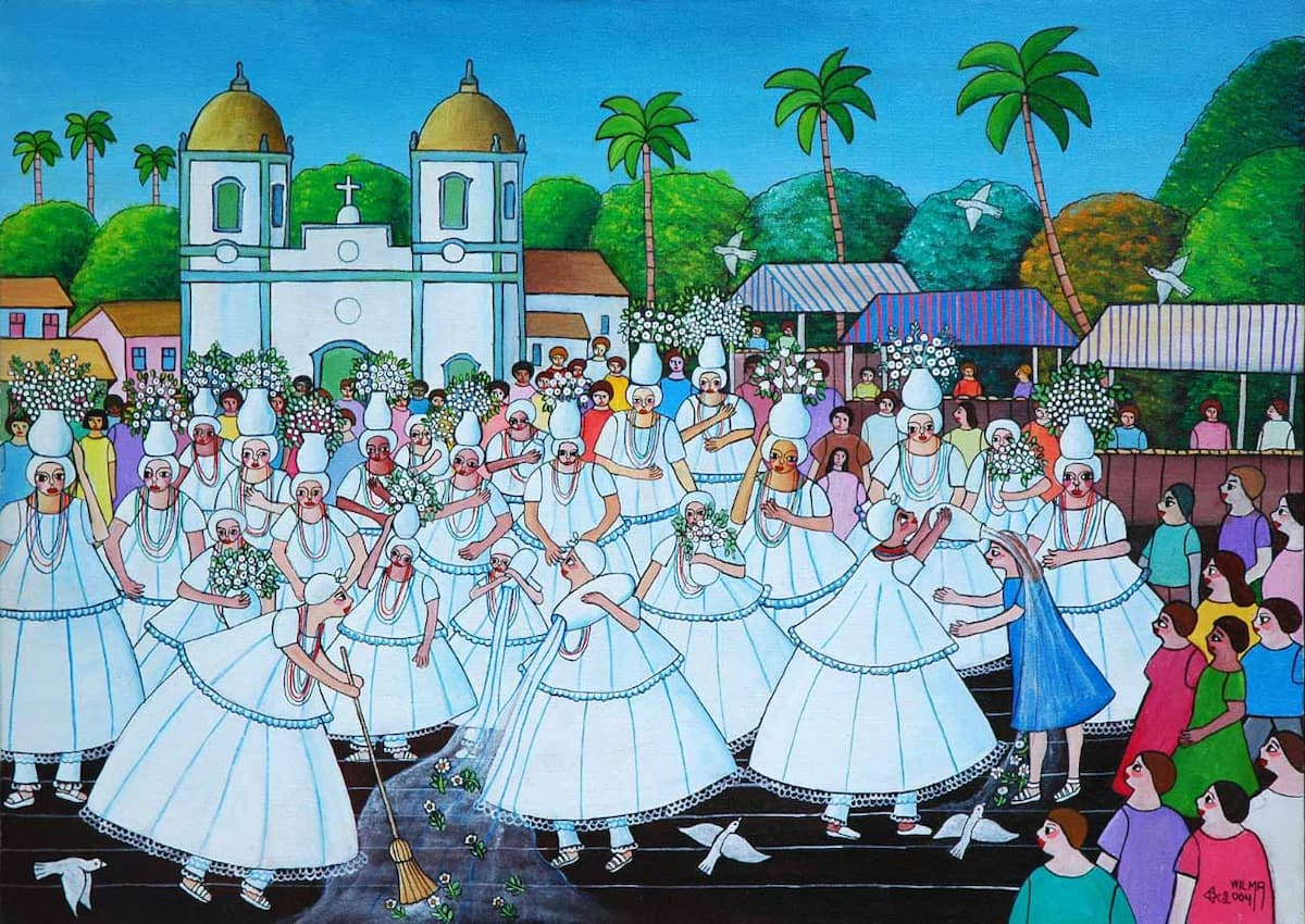 fue con el trabajoLas Baianas” que Wilma Ramos ganó reconocimiento y éxito en el mundo del arte naïf. son unicas, con falda geométrica estampada, recuerda a las telas de calicó, muy común en el arte popular. En la parte superior, visten una blusa blanca de manga corta adornada con collares de cuentas de colores y llevan un paño blanco atado en la cabeza., típico. El rico universo de los orixás y oxuns tenía un espacio garantizado en la obra del artista. En palabras de la artista, en una declaración dada en 2007, "Casi todo lo que pinto conecto la fauna y la flora. soy un defensor de la naturaleza. Esta es una forma de saludar la necesidad de preservar el medio ambiente.."