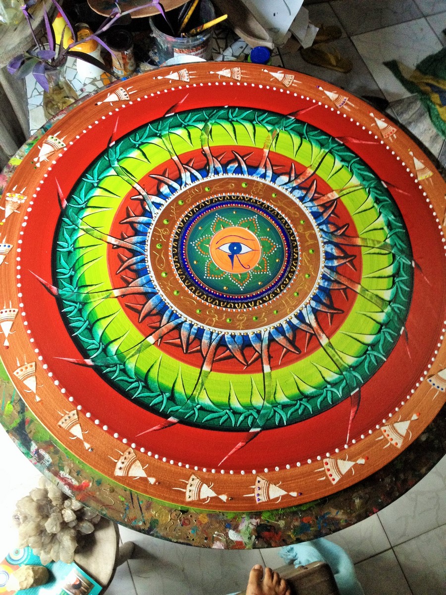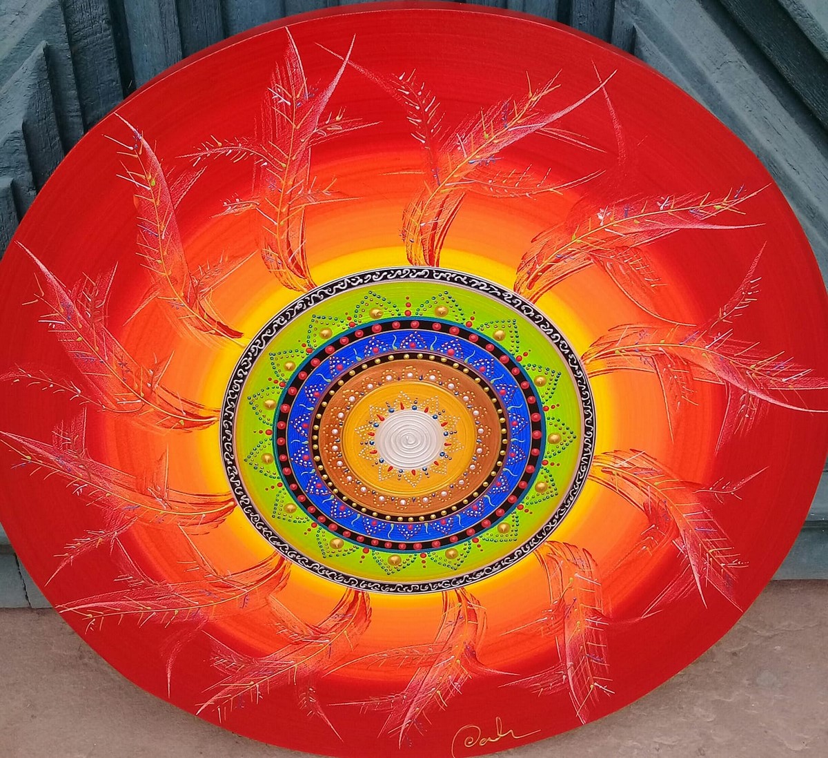 “mandalas pintura se convirtió en un tratado de paz con mis antepasados. Que vengo a buscar la curación y el intercambio de conocimientos.” – Paola Publio.