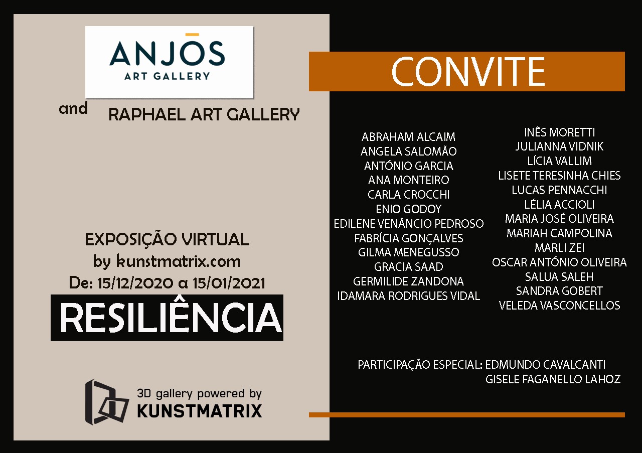Para superar juntos este difícil momento, que toda la sociedad esta pasando, a Anjos Art Gallery a través de su sanador Maria dos Anjos Oliveira e la Galería de arte Rafael / Edmundo R. El. Cavalcanti, se reunió 27 artistas resilientes y talentosos en una galería virtual 3D, donde el visitante puede ver todas las obras expuestas, uno por uno, en sus más mínimos detalles, autor de la obra, su técnica y dimensiones.