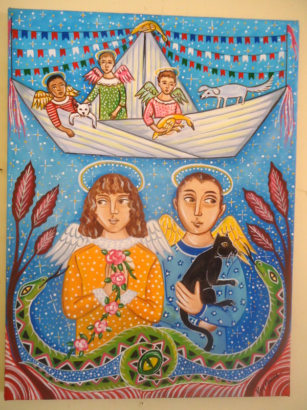 Primero me enamoré de los Maestros del Renacimiento, por los maestros expresionistas por los modernistas, por arte primitivo y arte barroco. Estaba aprendiendo y dando un paseo por estas influencias artísticas y desarrollando mi propio estilo o estilo con incentivos de artistas amigos.. Y así desarrollé mi arte y encajé en NAIF ART: donde podía crear libremente mis obras con tonos primitivos modernos y barrocos contemporáneos.