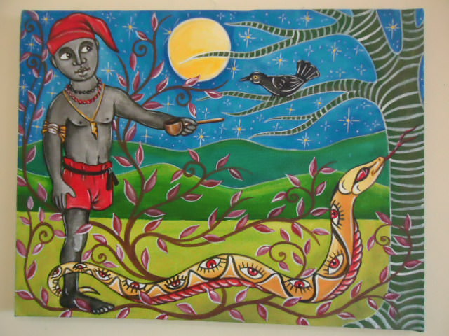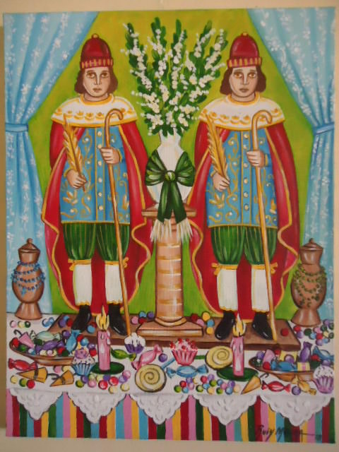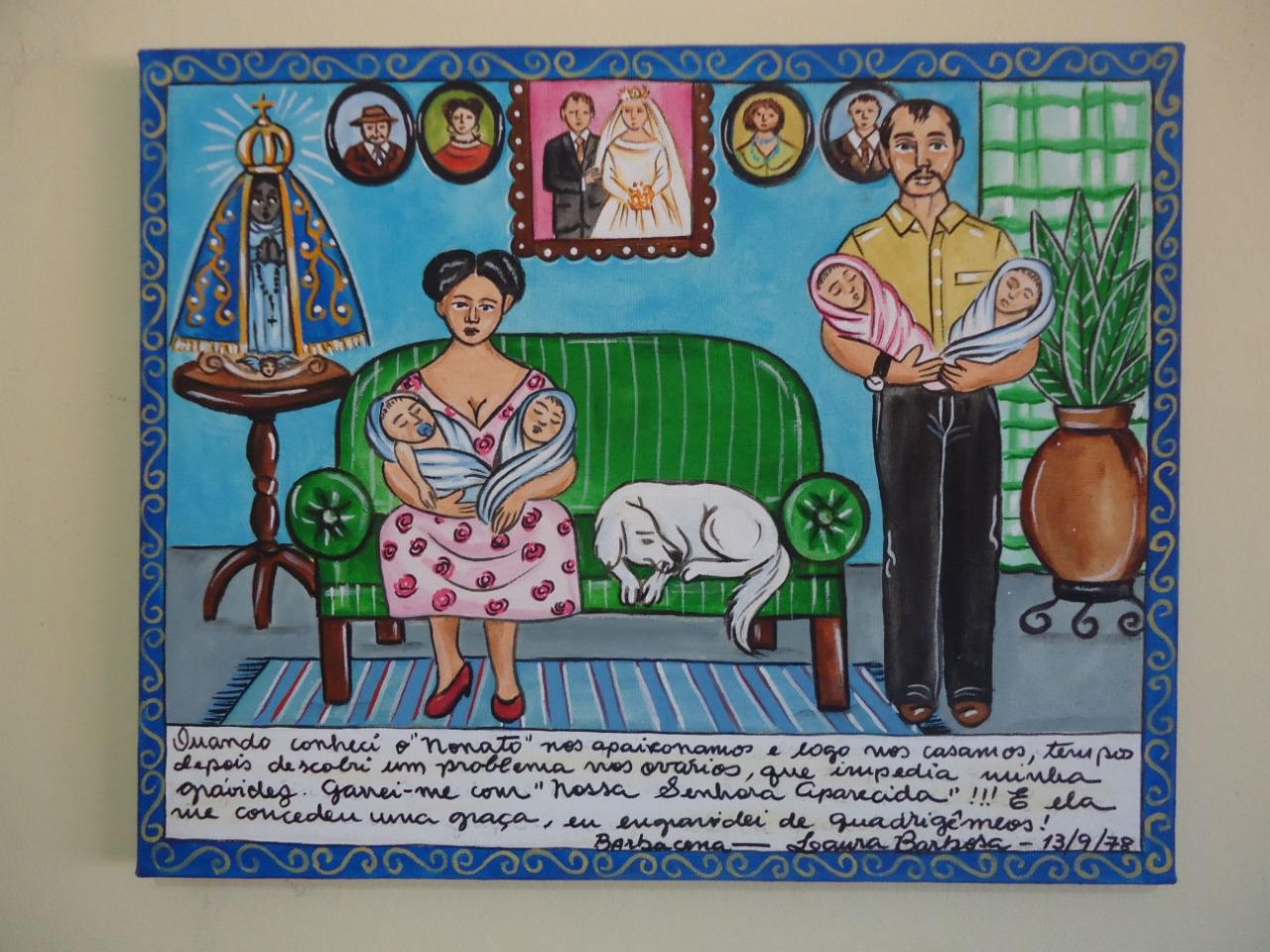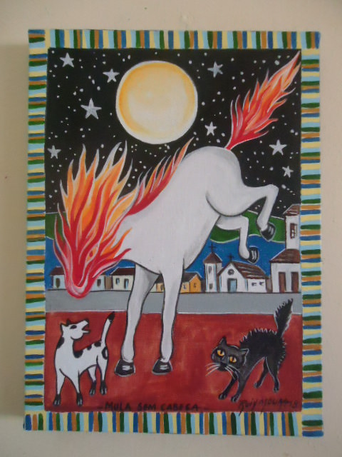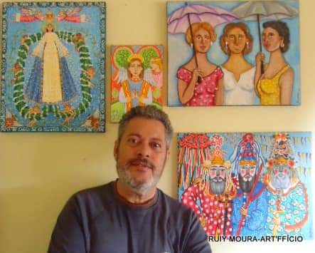 Es gratis en los temas que me inspiran., como el folklore y los mitos brasileños, así como nuestra religiosidad, recuerdos de la infancia y la familia o incluso viajar en un mundo de ensueño o juguetón. Puedo pintar un santo hoy y mañana pintar una tía costurera o una escena folclórica, Naif me da eso.