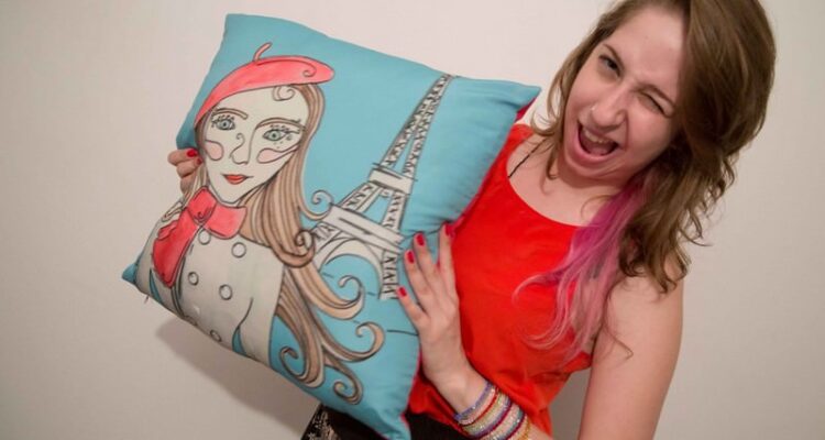 Comisariado en casa tira almohadas con ilustraciones del artista Aline Pascholati