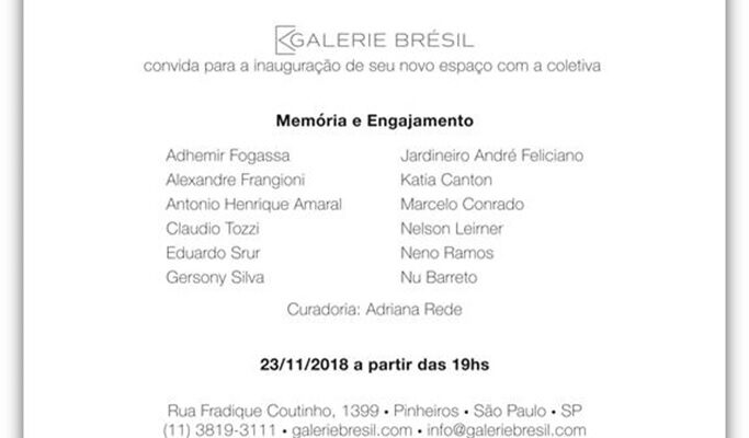 Curada por Adriana Red, espacio se abre la puerta y presenta espectáculos con obras de 12 renomados Artistas, como Leirner, Amaral y Tozzi, y talento sobre el ascenso fundado para difundir artistas brasileños independientes y arte contemporáneo en el extranjero, Galerie Brésil abre puertas, ahora en la oficina física, en el dia 23 … Leer más