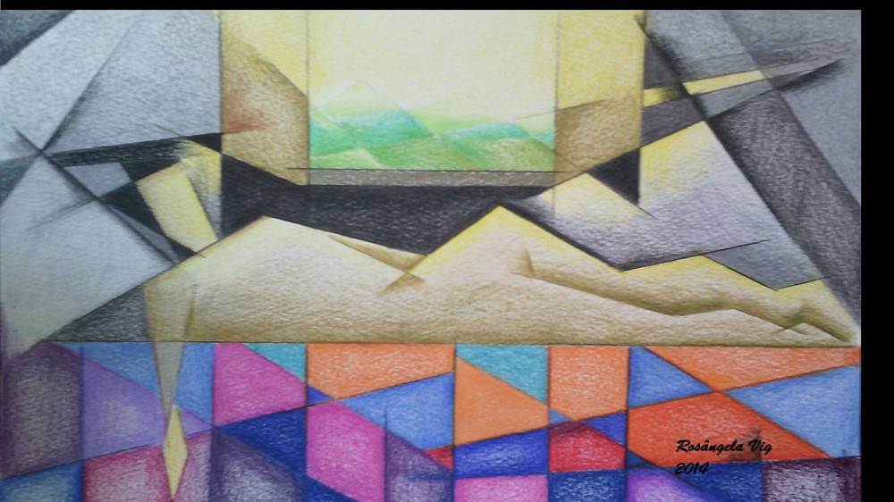 As obras fazem parte de uma série em que eu trabalhei com a geometria e as cores. Alguns são em tela, outros em lápis de cor, sobre papel.