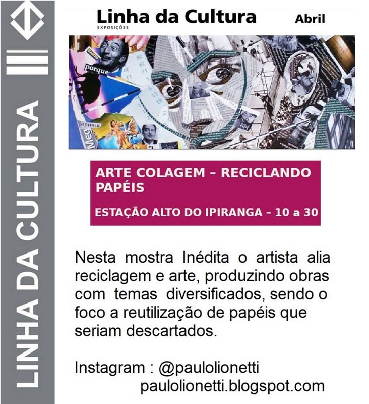 Paulo Lionetti, natural de São Paulo, encantou-se pela Arte desde a infância. A inspiração do artista veio do Cubismo, uma vez que Pablo Picasso e Georges Braque já trabalhavam com a técnica da colagem. A arte-colagem de Paulo aliou-se ao spray e ao acrílico, materiais constantes em suas obras. Com um estilo próprio, o artista coleciona várias exposições em seu currículo e sua Arte atrai o olhar. É possível se encantar por seu carro antigo (Fig. 1), repleto de recortes e de linhas de jornais. É possível perceber a expressão de surpresa de seu Salvador Dali (Fig. 2) ou a delicadeza da Moça do Brinco de Pérola (Fig. 3). Conhecidos personagens da Arte, da Música e personalidades se tornam obras de Arte com sua colagem.