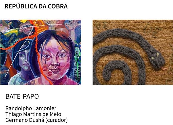 A Galeria Periscópio Arte Contemporânea abre a exposição “República da Cobra”, elaborada a partir de trabalhos inéditos e passados dos artistas Randolpho Lamonier e Thiago Martins de Melo, com curadoria de Germano Dushá, nesta quarta-feira (21/11), das 19h às 22h. A mostra apresenta pinturas, bordados e instalações até 5 de janeiro de 2019.