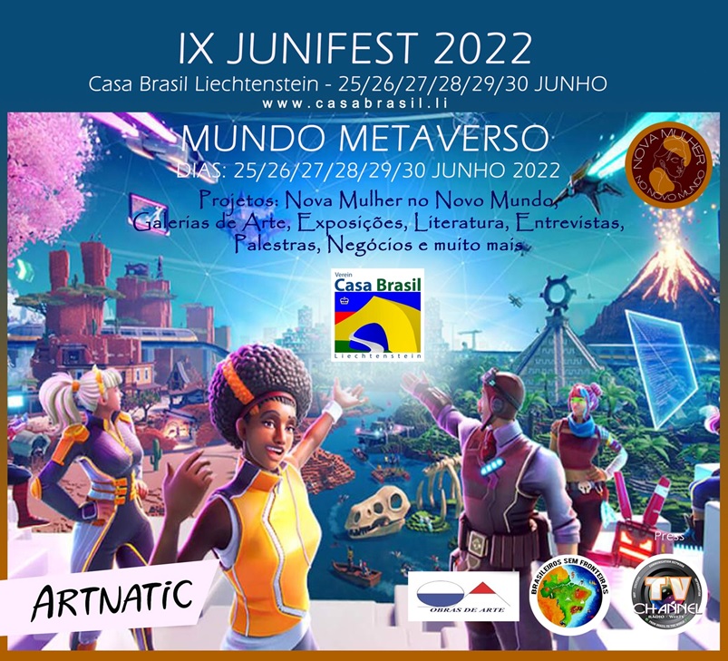 Mais uma vez a Artnatic inovou. Atuando na Europa em Embaixadas, Consulados, Centros Culturais, Galerias de Arte e por onde a Arte puder ser apreciada, a Casa Brasil Liechtenstein, equipe e curadora Denise da Cruz convidam para o JUNIFEST de 2022.