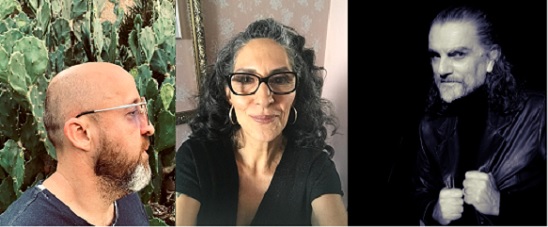 Fabrício Carpinejar (E) e Hique Gomes (D), mediados por Katia Suman, analisam o atual momento. Foto: Beatriz Reys, Katia Suman (selfie) e Helo Averbuck.