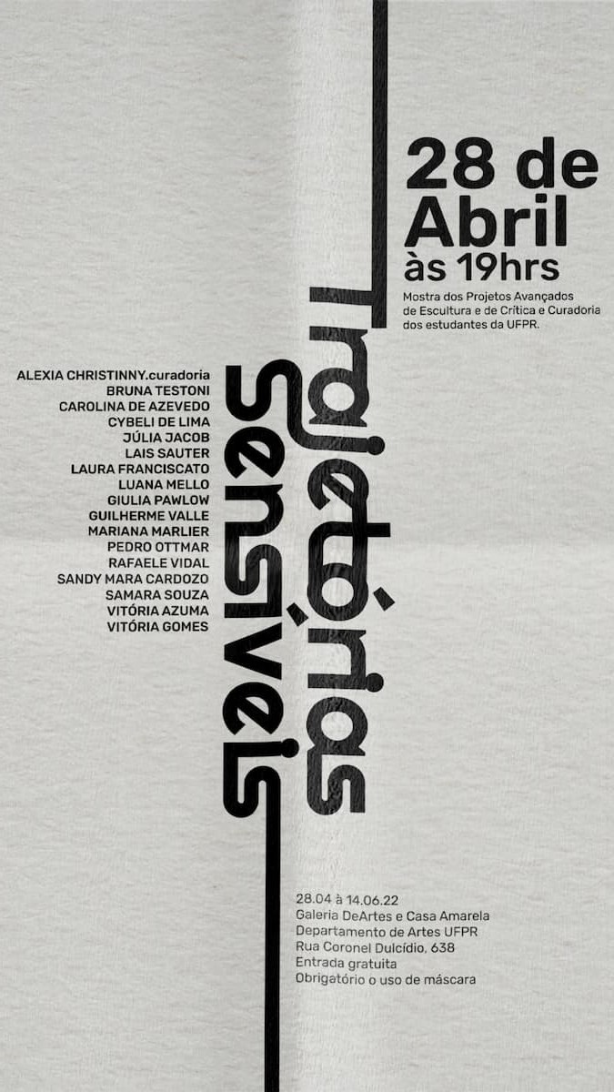 Realizada em parceria com os projetos avançados de Crítica e Curadoria e de Escultura dos discentes de Artes Visuais da Universidade Federal do Paraná, a mostra conta com trabalhos de 16 artistas universitários.