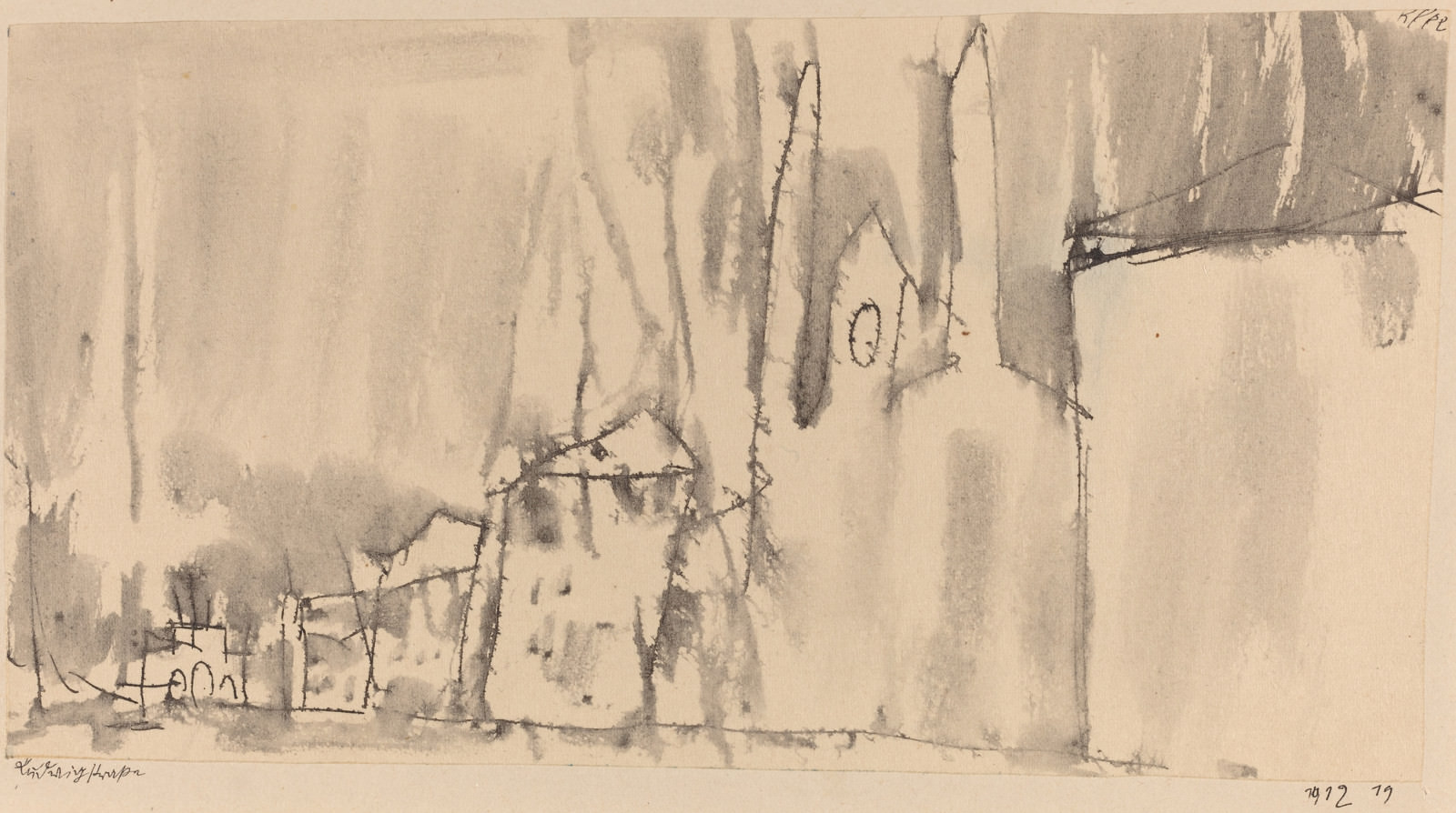 无花果. 8 - 保罗·克利, 路德维希, 1912, 笔和与奶油纸洗黑墨水, 放在纸板, 一般: 9.9 x 19 厘米 (3 7/8 x 7 1/2 在。). 国家艺术画廊, 华盛顿. Presente德本杰明和莉莲·赫茨伯格.
