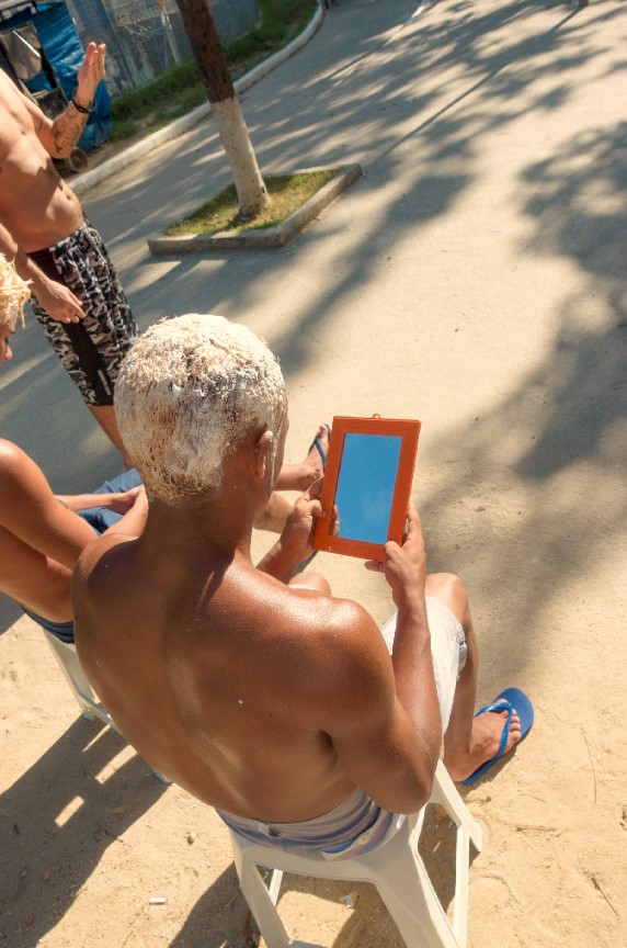 周二麦克斯韦干预邀请社区的理发店免费变色你的公共头发. 塑料池 3 一千升也将安装在高跷上,以供想要降温的游客使用. 由艺术家表演两次-在 2018, 在画廊甲蒂尔卡里奥卡的前, 和结束 2019, 在Rocinha中-“全球变色”也是对自由的评论, 蔑视和授权对任何离散结构和轻率的黑色机身俘获声明.
