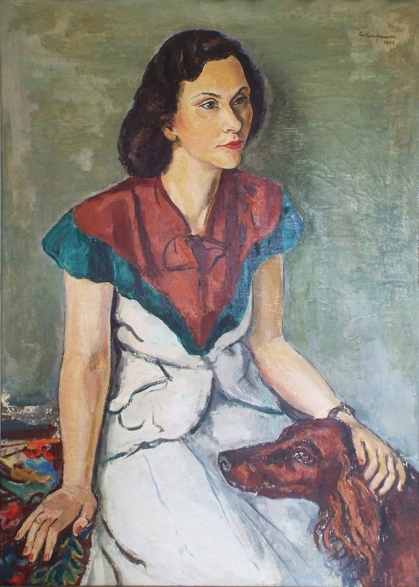 - 阿图尔·考夫曼 (米尔海姆, 德国, 1888 - 新弗里堡, RJ, 1971). 画像绘马克拉宾的, 1949. 布面油画, 100 x 73 厘米.