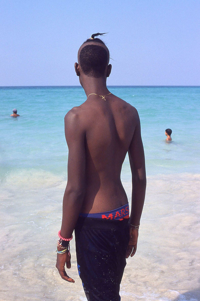 不同于古巴官方照片中庆祝的人群, 在你的照片中 阴影 特权个人. 在他们, 你看到难以捉摸的身体, 经常阴影, 谁问我们我们看到了什么, 以及隐藏的内容. 他的相机仍然对流行文化开放: 宗教符号, 刺青, 体育标志和外国国旗, 想象中的新人们在古巴内岛上的踪迹.
