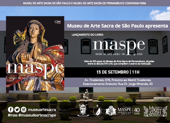 该 澳门艺术博物馆骶骨德圣保罗 - MAS-SP 促进出版“发行MASPE - 40 年“, 由设计 上. 里纳尔多·佩雷拉, 与历史学家合作 铁门德斯小阿劳霍. 和 Anazuleide费雷拉. 组成 229 网页, 工作在汇集 200 收藏品中的作品 伯南布哥州天主教艺术博物馆 – MASPE, 突出的纪念碑信仰它的作用, 文化和历史伯南布哥人.