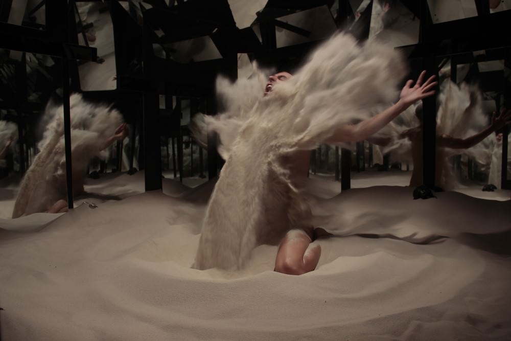 其次, Maikonķ进入无立方. 这个黑盒子内衬用沙子和镜子覆盖墙壁. 麦克风被定位在天花板和在轮毂内产生的声音出扬声器的外, 由音乐家贝托寺院操纵. 观众被放置在偷窥者的位置,并通过观看小窗口性能, 选择一个你想看看, 捕捉体其中有移动的片和反射. 镜子的游戏让观众产生不同的观点. 艺术家涉及沙子和发掘件衣服: 皮革吊带和黑色的裙子. “在这个 西洋镜xamânico 逐步建立人物角色, 新兴通过我的声音, 呼吸和运动. 一组反射镜,其中公共观察并还观察到. 考虑连续状态和图像的外观和死亡“, 帐户的艺术家.