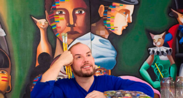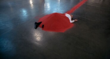 亚历山大 D ' Angeli 用途 350 quilos de areia vermelha para cobrir seu corpo estático durante duas horas…